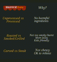 Kids Love Bravour. Parents have peace of mind. Made from Choice Cuts of Super Jumbo Leg Quarter; Not made from MDM, which is banned for use in human food in other countries.